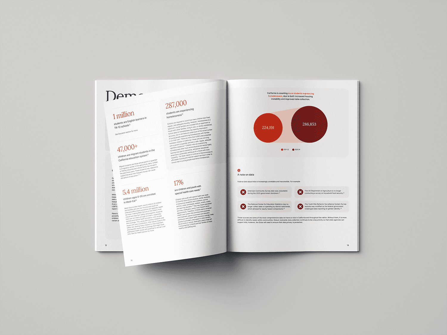 I co-led the design, defining the layout system, typographic hierarchy, color framework, and overall visual direction while partnering with policy and research teams to translate complex data into accessible visuals.
